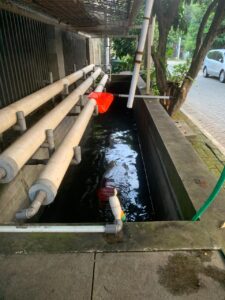Fasum disekitar rumah Bapak Bimo kebetulan juga memungkinkan untuk dimanfaatkan sebagai lahan produktif dengan membuat kolam ikan di atas saluran air karena batas pagar sampai jalan ada lahan selebar 2,5 meter. Hasil dari kolam tersebut pernah dikomersialkan dan beberapa pelanggannya adalah umat Matheus. “Namun saat ini saya sudah lebih fokus untuk berbagi buat yang kepingin dan baik tetangga maupun teman-teman,” tambah Bapak Bimo.