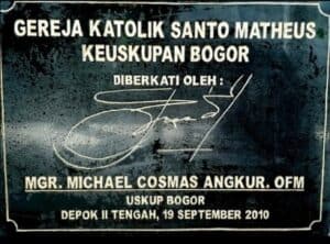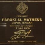 Yang Mulia Bapa Uskup Bogor Mgr. Michael Cosmas Angkur meresmikan bangunan Gereja Paroki St. Matheus bertepatan dengan Perayaan Satu Dasawarsa Paroki St. Matheus dan Pesta Nama St. Matheus pelindung gereja.